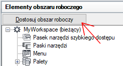 - W panelu Zawartość obszaru roboczego kliknij Dostosuj obszar roboczy.