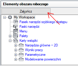 - W panelu Zawartość obszaru roboczego kliknij Zakończ.