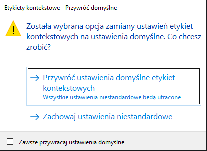 Jeśli typ obiektu jest zaznaczony, właściwości dla tego typu obiektu są wyświetlane w etykiecie kontekstowej, gdy kursor zostanie umieszczony na obiekcie tego samego typu. Należy usunąć znacznik widniejący obok typu obiektu, aby ten typ przestał być obsługiwany w etykietach kontekstowych.