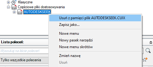 Zostaną wyświetlone wszystkie częściowe pliki CUIx wczytane w głównym pliku CUIx.