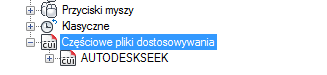 Częściowe pliki CUIx wczytane do głównego pliku CUIx są wymienione na liście w węźle Częściowe pliki ustawień.