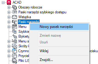 Nowy pasek narzędzi (o nazwie Paseknarzędzi1) zostanie umieszczony na dole drzewa Paski narzędzi.