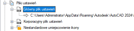 - W Eksploratorze plików wybierz <litera dysku>:\Users\<nazwa profilu użytkownika>\AppData\Roaming\Autodesk\<nazwa produktu>\<numer wersji>\<język>\support\<nazwa pliku adaptacji>.cuix.