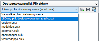 - Wybierz Główny plik dostosowywania <nazwa pliku> lub jeden z wczytanych plików CUIx w celu ustawienia go jako pliku roboczego.