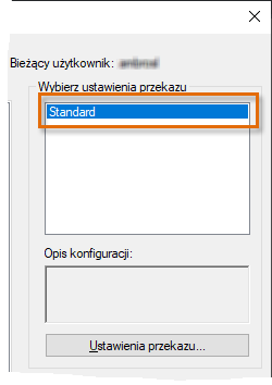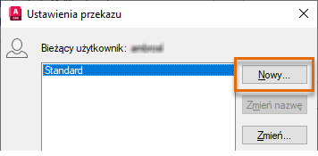 W oknie dialogowym Ustawienia przekazu wybierz opcję standardowych ustawień przekazu i kliknij przycisk Nowy.