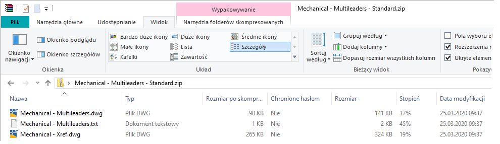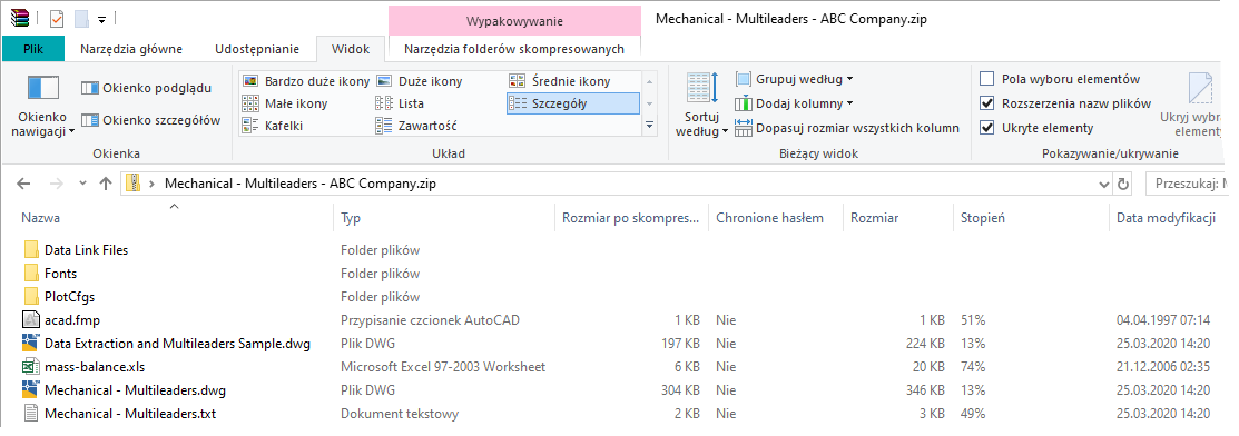 Przejdź do folderu C:\Program Files\Autodesk\AutoCAD <wersja>\Sample\Mechanical Sample i otwórz plik Mechanical - Multileaders.dwg.