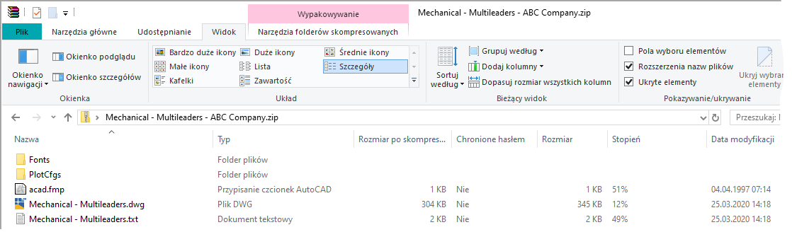 Zawartość pliku ZIP zostanie wyświetlona w oknie i możesz zobaczyć sposób uporządkowania plików.