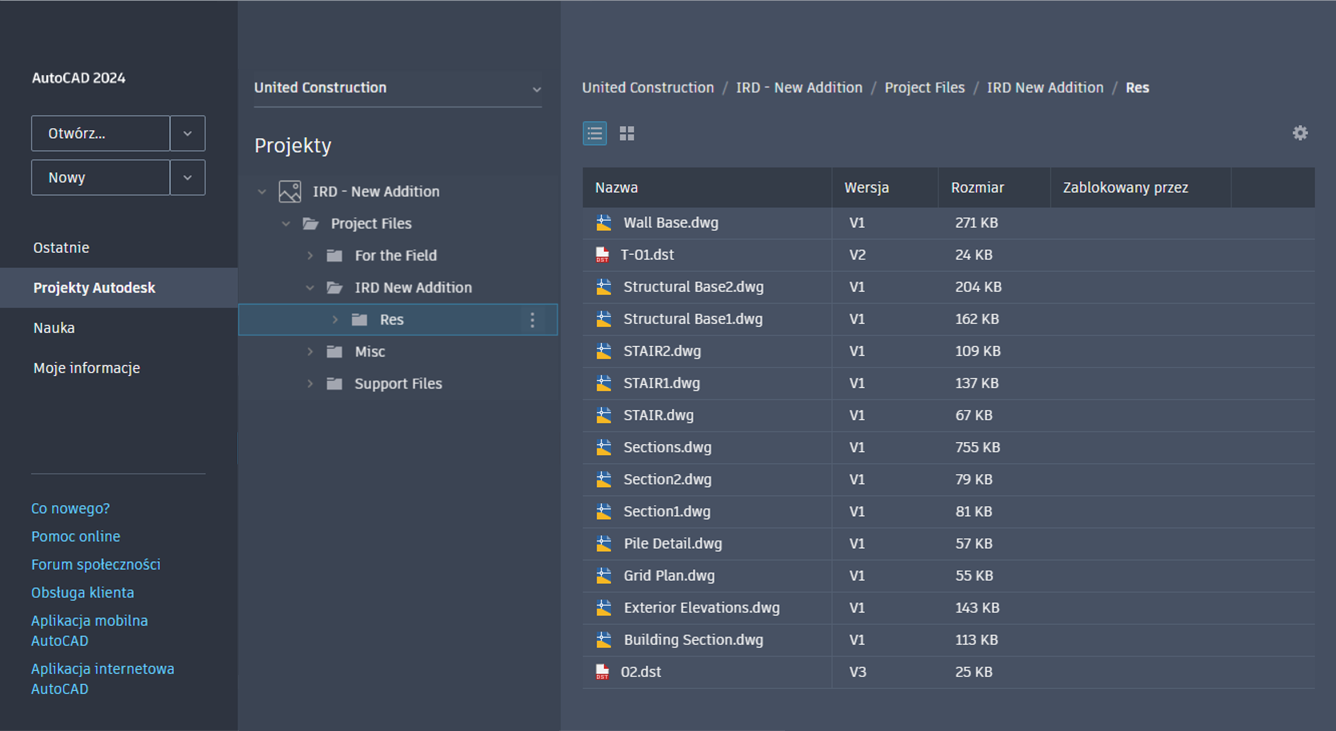 - Nazwa karty Autodesk Docs została zmieniona na Projekty Autodesk.