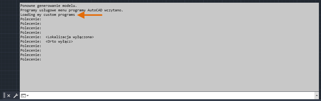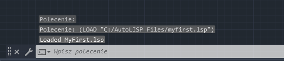 Po wczytaniu powinien się pojawić komunikat „Loaded MyFirst.lsp” w historii okna wiersza polecenia wyświetlonego przez funkcję prompt.