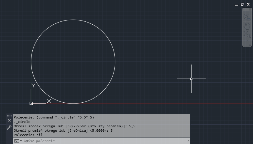 W kolejnych punktach za pomocą funkcji command narysuj okrąg i powiększ go do zakresu rysunku.