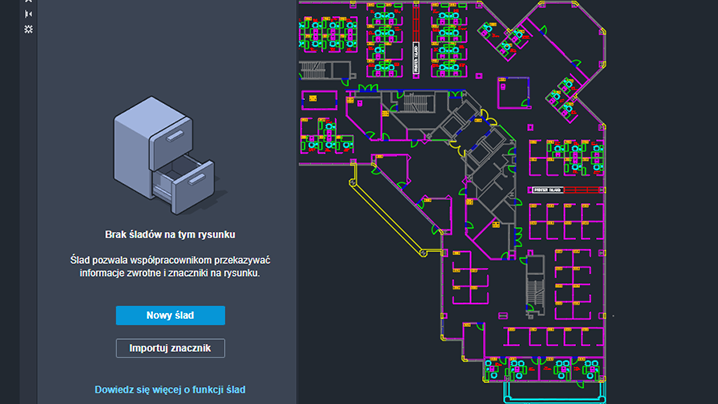 Ślad zapewnia bezpieczne miejsce umożliwiające dodawanie uwag bez zmiany istniejącego rysunku.