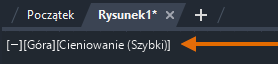 W stylach wizualnych Cieniowany lub Cieniowany z krawędziami w elemencie sterującym rzutnią jest wyświetlana opcja (Szybki), co wskazuje, że w użyciu jest nowoczesny system graficzny 3D.