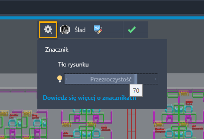 Podczas wyświetlania zaimportowanych znaczników można zmienić przezroczystość tła, aby dostosować ich widoczność.