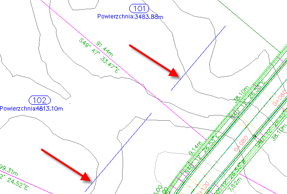 Rzutowanie punktów COGO i polilinii 3D na widok profilu