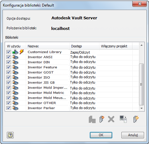 - W oknie dialogowym Projekt kliknij przycisk „Konfiguruj biblioteki Content Center”, aby wywołać okno dialogowe Konfiguruj biblioteki. Patrz rysunek 1.