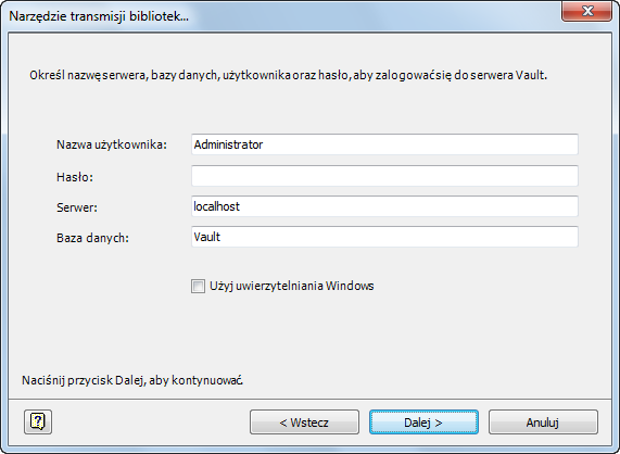 - Kliknij przycisk [Dalej], aby zalogować się do serwera Vault. Patrz rysunek 3.