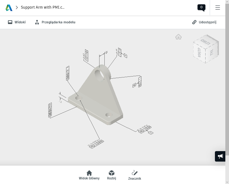 Opisy 3D są obecnie wyświetlane w widokach udostępnionych i przeglądarce usługi Fusion Team.