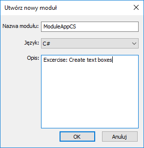Otwarte zostanie okno dialogowe Utwórz nowy moduł.