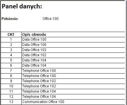 Zestawienie rozdzielnicy danych z jedną kolumną obwodów