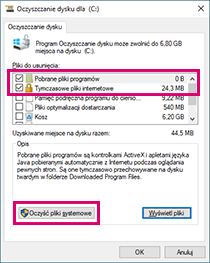 Po wystąpieniu problemu wyczyść pliki pamięci podręcznej współpracy, usuń pliki tymczasowe systemu Windows i uruchom Oczyszczanie dysku dla systemu Windows w celu usunięcia tymczasowych plików internetowych.