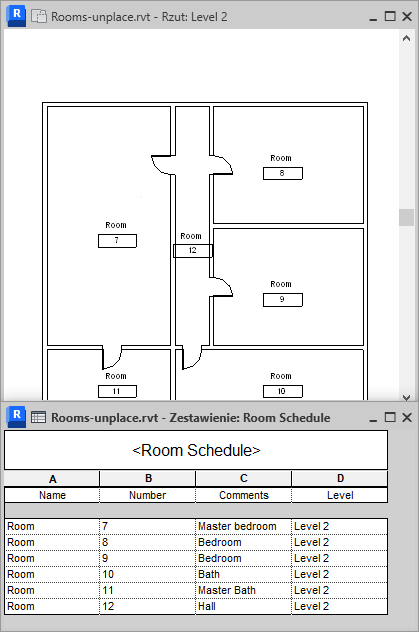 Utworzone pomieszczenia można usuwać z modelu budynku, tymczasowo lub na stałe.