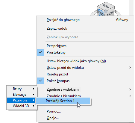 Używając narzędzia ViewCube, można zorientować widok 3D w dowolnym rzucie, widoku elewacji, przekroju lub widoku 3D w modelu.