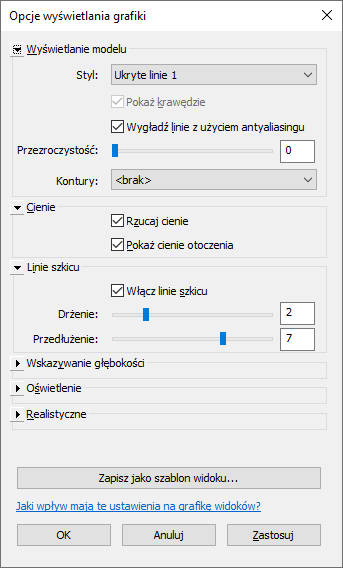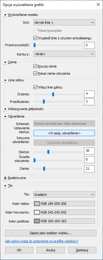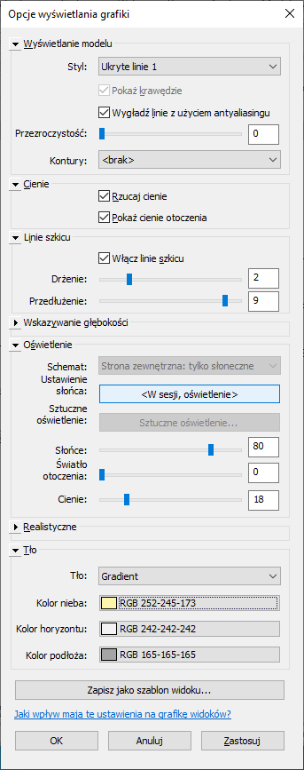 W widoku tym użyto następujących ustawień w oknie dialogowym Opcje wyświetlania graficznego: