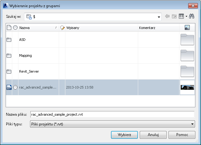 - Wybierz plik .rvt i kliknij przycisk Wybierz, aby zobaczyć, które grupy są dostępne.