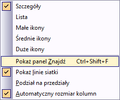 W nowych kolumnach obsługiwany jest widok miniatur. Można również prowadzić wyszukiwanie wewnątrz siatki. Aby uzyskać dostęp do tego paska wyszukiwania, kliknij siatkę prawym przyciskiem myszy i wybierz opcję Pokaż panel Znajdź.
