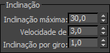 - O número de graus que o delegado inclinará como uma função do ângulo de giro no quadro atual. Por exemplo, se Inclinação por giro=1, o delegado irá inclinar um grau para cada grau que estiver girando em determinado quadro. Padrão=1,0.