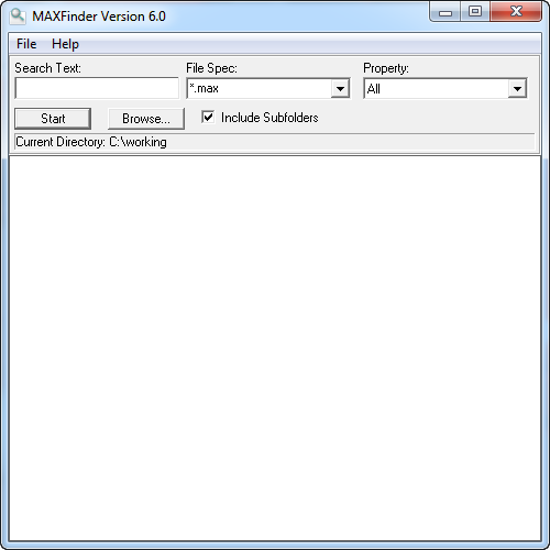 O Utilitário do localizador de arquivo MAX permite pesquisar arquivos MAX que contêm propriedades específicas.