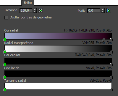 Especifica a gradação de cor para o brilho. Clicando no botão de seta verde permite animar este controle. Este parâmetro pode ser animado.