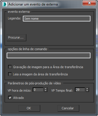 Aviso: A imagem que o evento lê a partir da área de transferência é colocado na fila do Video Post. Se o programa externo não for o que você deseja, isto pode apagar ou substituir o resultado de todo processo do Video Post.