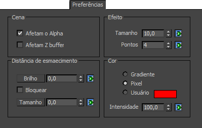 O painel preferências define o tamanho e o número de pontos na realçar, oclusão configurações, e se ele afeta a z-buffer ou canais alfa.