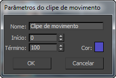 Insira um nome de clipe, intervalo de quadros e cor usando os controles na caixa de diálogo Parâmetros do clipe de movimento. o estúdio de personagens determina que clipes devem ser acionados por estados que você define no painel Estado.