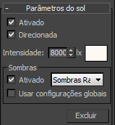 Nota: A Intensidade é definida automaticamente e não pode ser definida manualmente se o sol estiver sob o controle de um sistema de luz natural.