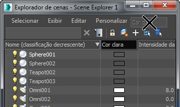 Classificar a lista no Scene Explorer com base em uma coluna ou colunas:
