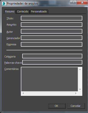 As Propriedades de arquivo permitem que você insira informações sobre uma cena que, posteriormente, podem ser lidas pelo Windows usando um programa como o Windows Explorer, para ver as propriedades de arquivo de cena.