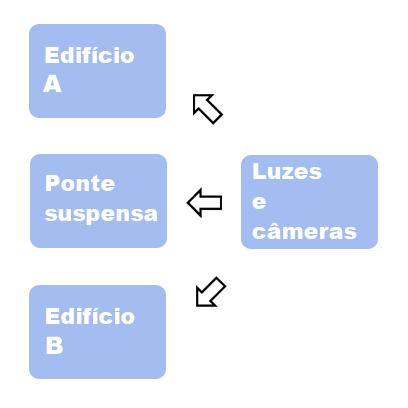 Mas os artistas que trabalham na Construção A e o artista que trabalha na ponte precisam ver o trabalho um do outro para certificar-se de que tudo esteja alinhado. A solução óbvia seria fazer XRef do arquivo de cena um do outro: