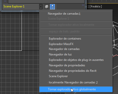 - Em qualquer global de Scene Explorer, clique na seta situada à direita do campo de texto na parte inferior esquerda da caixa de diálogo e selecione Tornar ativo Explorer local.