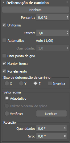 - Exibe a escala atual para o objeto deformado ao longo da spline. Este campo não é editável.