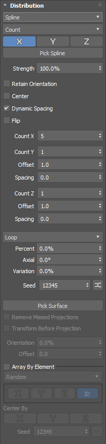 - Permite selecionar de que forma os clones são colocados ao longo da spline de destino.