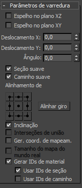 - Quando ativada, a seção é invertida horizontalmente em relação à spline para a qual o modificador Varredura é aplicado. Padrão=desativado.