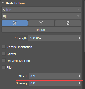 - Na implementação Distribuição, defina Deslocamento como 0,9.