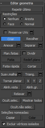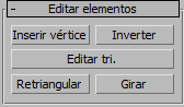 implementação Seleção. Este tópico aborda as funções da implementação Editar polígonos/elementos e da implementação Editar geometria para esses tipos de subobjeto. Para outros controles, consulte Modificador Editar polígono.