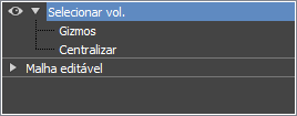 O gizmo Seleção de volume é escalado junto com seu objeto. Portanto, se você aplicar um modificador de Seleção de volume e alterar a escala do seu objeto (com a barra de ferramentas Função de escala), a seleção não mudará. Por outras palavras, todas as três transformações afetam o gizmo Seleção de volume e seu objeto de forma idêntica.