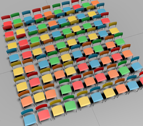 Agora, cinco cores diferentes são aplicadas aleatoriamente às cadeiras.