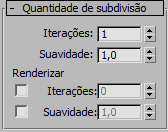 Permite selecionar um número diferente de interações de suavização a serem aplicadas ao objeto no tempo de renderização. Ative Iterações e use o controle giratório à direita para definir o número de iterações.