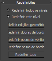Retorna para às configurações iniciais ou padrão para edições geométricas, dobras e espessuras para todos os níveis de subobjeto.