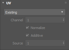 - Define o canal do mapa UV de origem quando o método UV é definido como Additive.